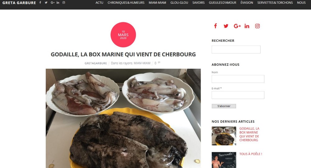 Blandine VIE du site GRETA GARBURE vous relate sa découverte de la black box de la Godaille. Elle nous dévoilera bientôt ses recettes popotées avec nos encornets, seiches ! J’ai hâte de découvrir ce qu’elle va faire avec nos jolis céphalopodes….miam