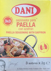 Pour l’accompagnement: Dans un wok faire revenir du riz à paella dans l’huile d’olive, déglacer avec du fumet de poisson. Ajouter un sachet de préparation paella. Laisser cuire tout doucement